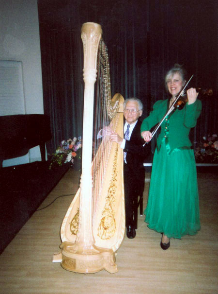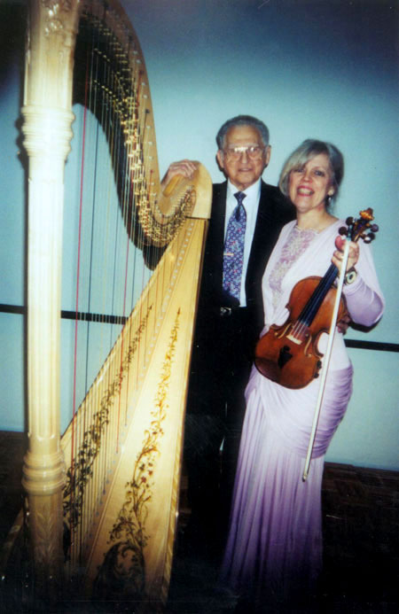 The Rosen Duo (Harpist Myor Rosen and Violinist Eden Vaning-Rosen) in performance at the Palm Beach County Airport Concert Series