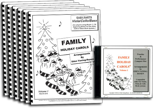 The Holiday Season is a wonderful time to set the fireplace a blazing, heat up the hot chocolate, and invite grandpa and grandma over to share in the fellowship and blessings of music. For hundreds of years families and friends have gathered together to enjoy singing and playing Holiday Carols together. This very unique set features 12 of your favorite Holiday songs, and is presented in a set of 6 special books. There are very easy parts for new beginners, and these easy parts makes it possible for small children (and even grandma) to play and participate. They are often left out, and want to join in too! There are intermediate and advanced level parts for Violin, Viola, Cello and Bass, Piano, Guitar and Singers, too. These parts are specially created so they can also be played by Flutes, Oboes, Bassoons, Trombones, Harps, and other instruments played by family members and friends. The set comes with a great Practice and Performance CD, which you can take to Retirement Centers, to Church, or even to play when you bundle up and go out Christmas Caroling! You will not want to miss getting your Family Holiday Carols soon, to practice and start building your wonderful family holiday memories! You will treasure your Family Holiday Carols as it brings your family joy and happiness, for years and years to come! Practice & Performance CD