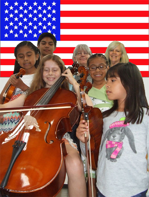 Students love to play Patriotic Tunes and what a wonderful way to honor the values of our country! Get your family and friends together to share in the blessings of playing music together with the Family Patriotic Album by Eden Vaning! This set has 12 favorite Patriotic songs, with 6 different ability levels from very simple parts for beginners, to more challenging parts for advanced players. These 6 books make it possible for Violins, Violas, Cellos, and Bass Players to be joined by Piano, Guitar, Flute, Singers, Trombone Players, Harp, etc., for hours and hours of fun! Watch a student's enthusiasm spark! Get the group ready to share music in the community with a PATRIOTIC TOUR! The set comes with a Performance/Practice CD to take to your performances! The Family Patriotic Album is perfect to use to participate in parades at Fourth of July, bring happiness at retirement centers, for city celebrations, fairs, and to Honor City Heros, Policemen, Firemen! There is no limit to the fun you family can have sharing Patriotic music with others, for years and years to come! Students speak"I love playing the violin, and especially playing in parades."