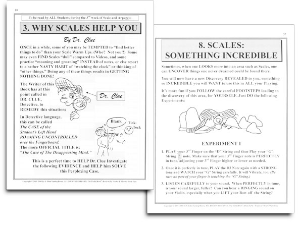 How do I get my child to DO his scales?This is not a common problem when using this book. Children can find them boring, especially when their importance is not understood. This book gives brilliant experiments for the student to try. These INTEREST the student. The result is that the student actually participates in his scale studies and understands how these apply to him! Following through experiments to uncover the riddle of Scales, the student turns his interest into the good habits which will serve him for the rest of his Viola playing life.