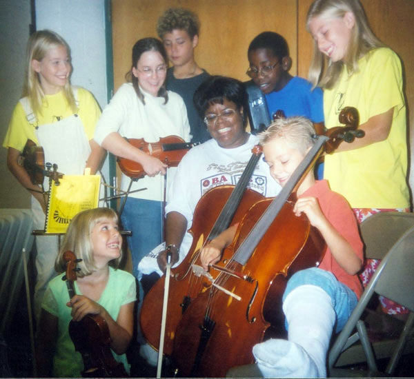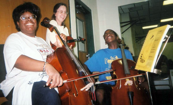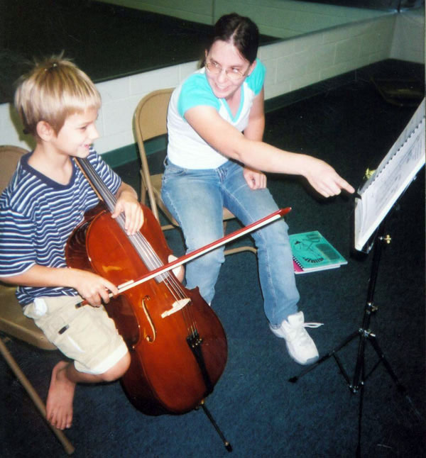 Cello is fun - Instructor Brenda Reynolds works with student at YMCA Musical Alternatives Program