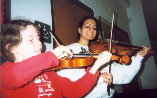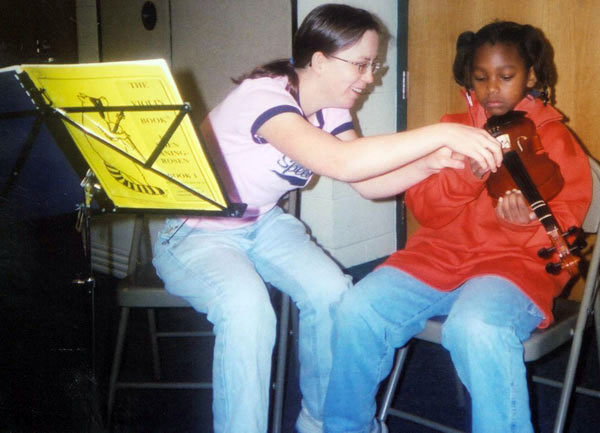 Jessica Honka gives lesson to student at YMCA Musical Alternatives Program